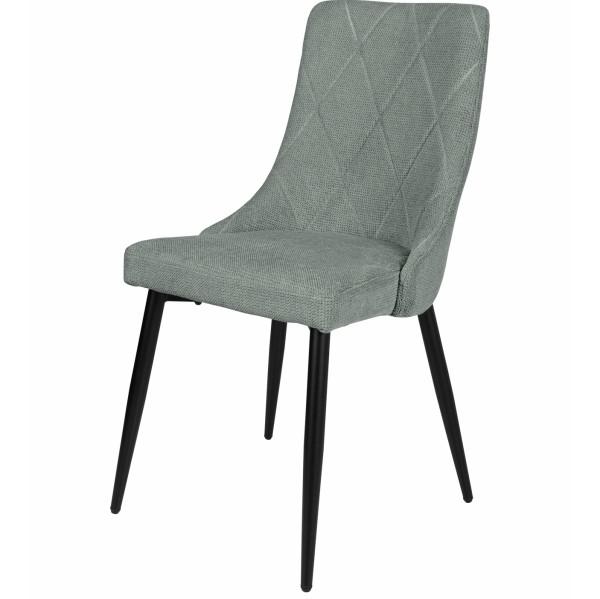 Fekete porfestett lábakkal rendelkező, puha tapintású szövettel kárpitozott, enyhén ívelt háttámlás, kényelmes étkezőszék.