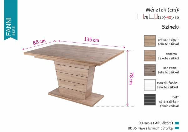 A Fanni asztal méretei: 135 x 85 ( + 40 cm vendéglap)