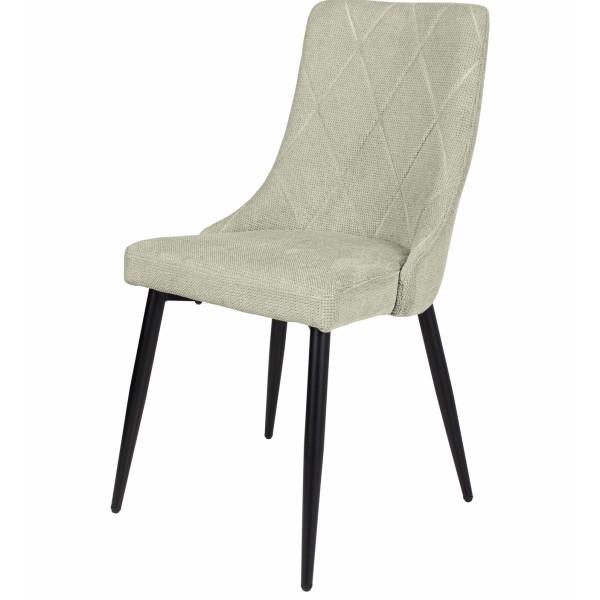 Fekete porfestett lábakkal rendelkező, puha tapintású szövettel kárpitozott, enyhén ívelt háttámlás, kényelmes étkezőszék.