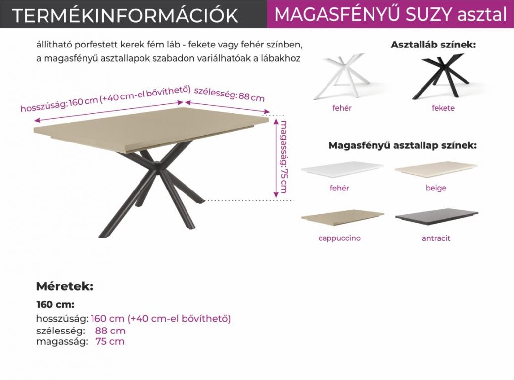 Bővíthető Magasfényű Suzy asztal + 4 db Alina szék