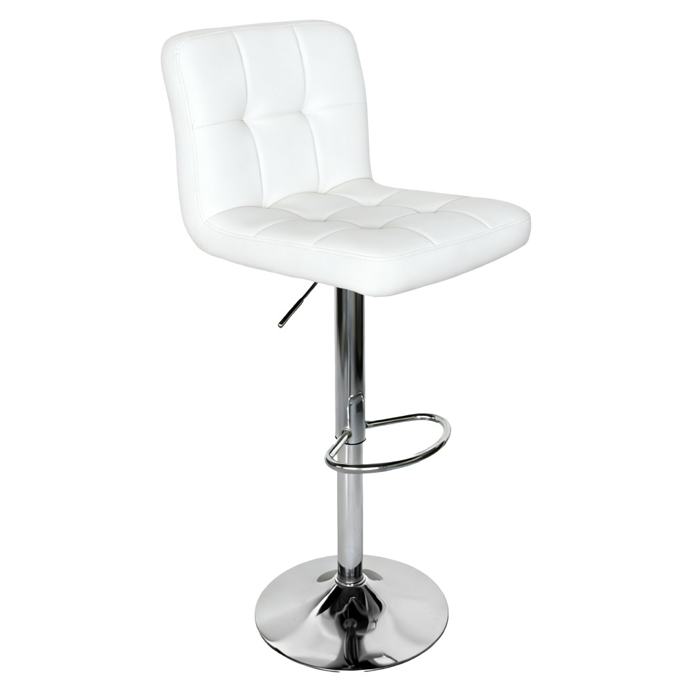 Bárszék KANDY 2 NEW Anyag: műbőr/króm A szövet kopásállósága: 100 000 Martindale Színe: fehér Méretek (SzéxMéxMa): 44x44x92-113 Állítható magasságú ülőrész Egy kar segítségével állítható Ülőrész magassága: 60-80 cm Ülőrész mélysége: 37 cm Teherbírás: 100 kg Díszvarrat Szállítás szétszerelve