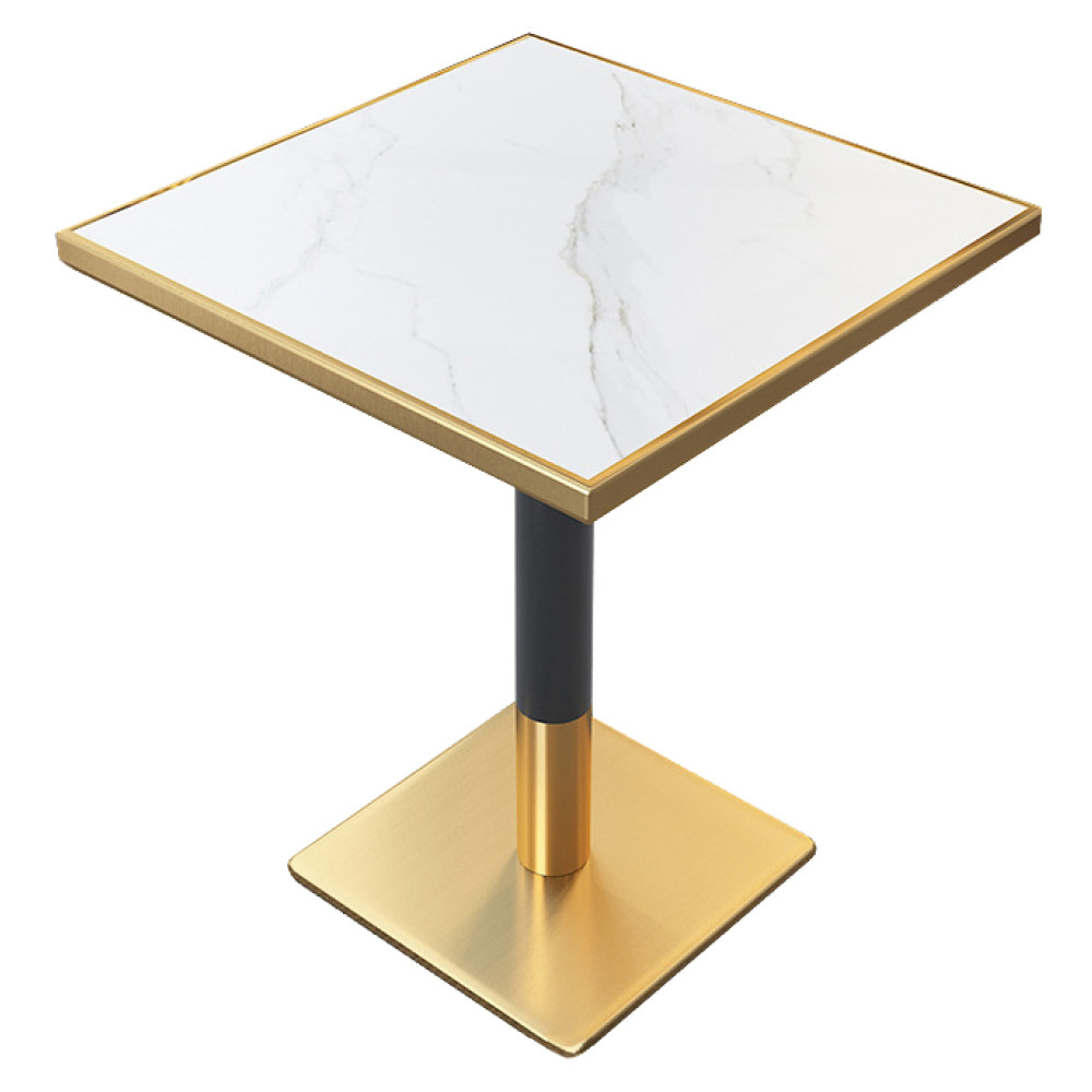 Bisztró asztal étkezőbe, fehér márvány/fekete/arany, 70x70 cm, PRESTON (RP)
