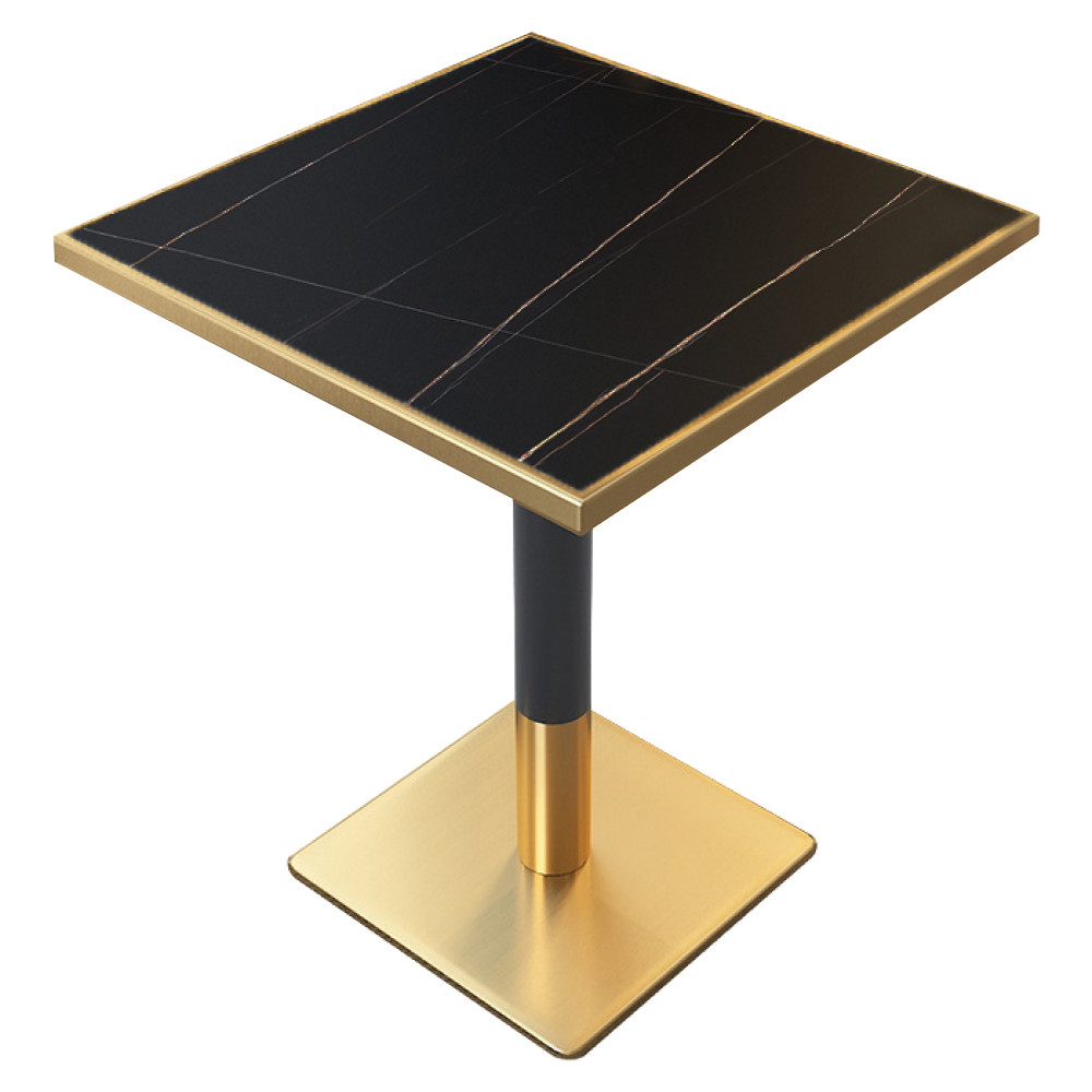 Bisztró asztal étkezőbe, fekete márvány/fekete/arany, 70x70 cm, PRESTON (RP)