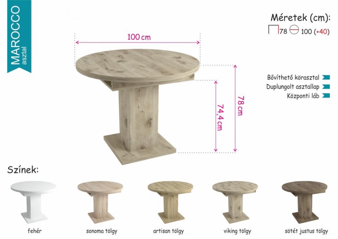 Marocco kerek asztal , mely oválissá nyitható + 4 db Blanka szék.