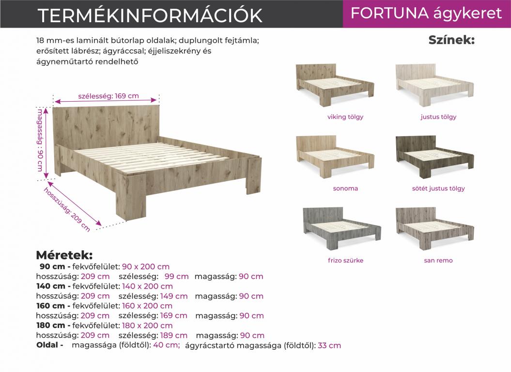 A Fortuna ágykeret 180 cm széles fekvőfelülettel rendelkező változata, mely több színben elérhető. Kiegészítőként rendelhető hozzá kihúzható ágyneműtartó.