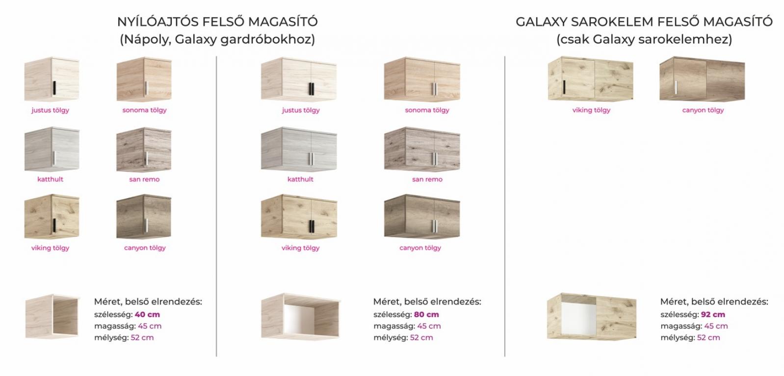 Megjelent Galaxy gardróbrendszerünk, mellyel egy igazán "galaktikus" berendezés alakítható ki! Egy igazán mutatós, jól pakolható elemes gardrób összeállítás, melyet a széles elemválasztékból, igény szerint rendezhet!