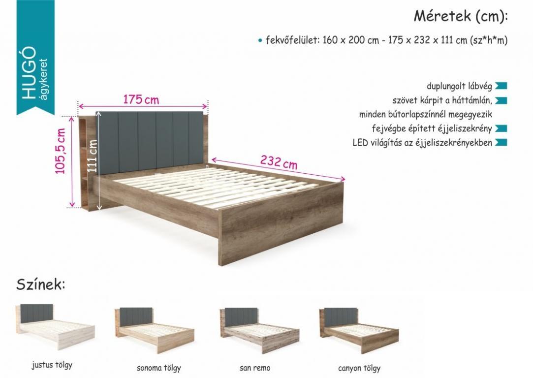 Fekvőfelület mérete: 160 x 200 cm.