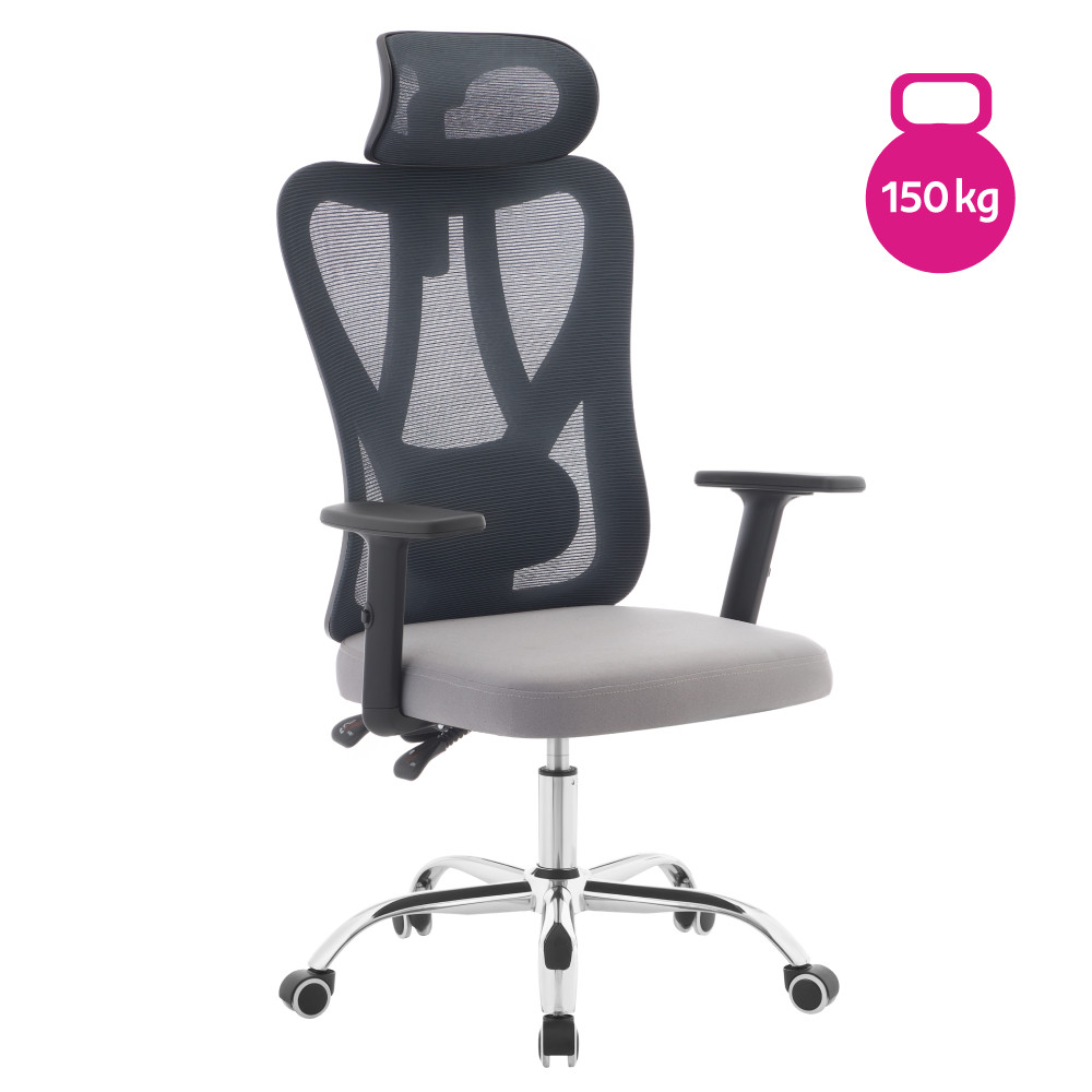 Anyag: háló/szövet/műanyag/fém A háló kopásállósága a Martindale teszt szerint: 90 000 kopás A textília kopásállósága a Martindale teszt alapján: 80 000 kopás Szín: sötétszürke/világosszürke/fekete/króm Méretek (SzxMéxMa): 67x57x121-131 cm Ülés magassága: 43-53 cm Ülés mélysége: 48 cm Ülés szélessége: 46 cm Háttámla szélessége: 52 cm Háttámla magassága: 79 cm Teherbírás: 150 kg Forgó funkció Hintafunkció Állítható ülésmagasság Állítható magasságú kartámaszok Állítható deréktámasz Állítható magasságú fejtámla Állítható dőlésszögű fejtámla Univerzális kerekek A kerekek puha és kemény padlófelületekre egyaránt alkalmasak Praktikus Ergonomikus tulajdonságok Szétszerelve szállítva