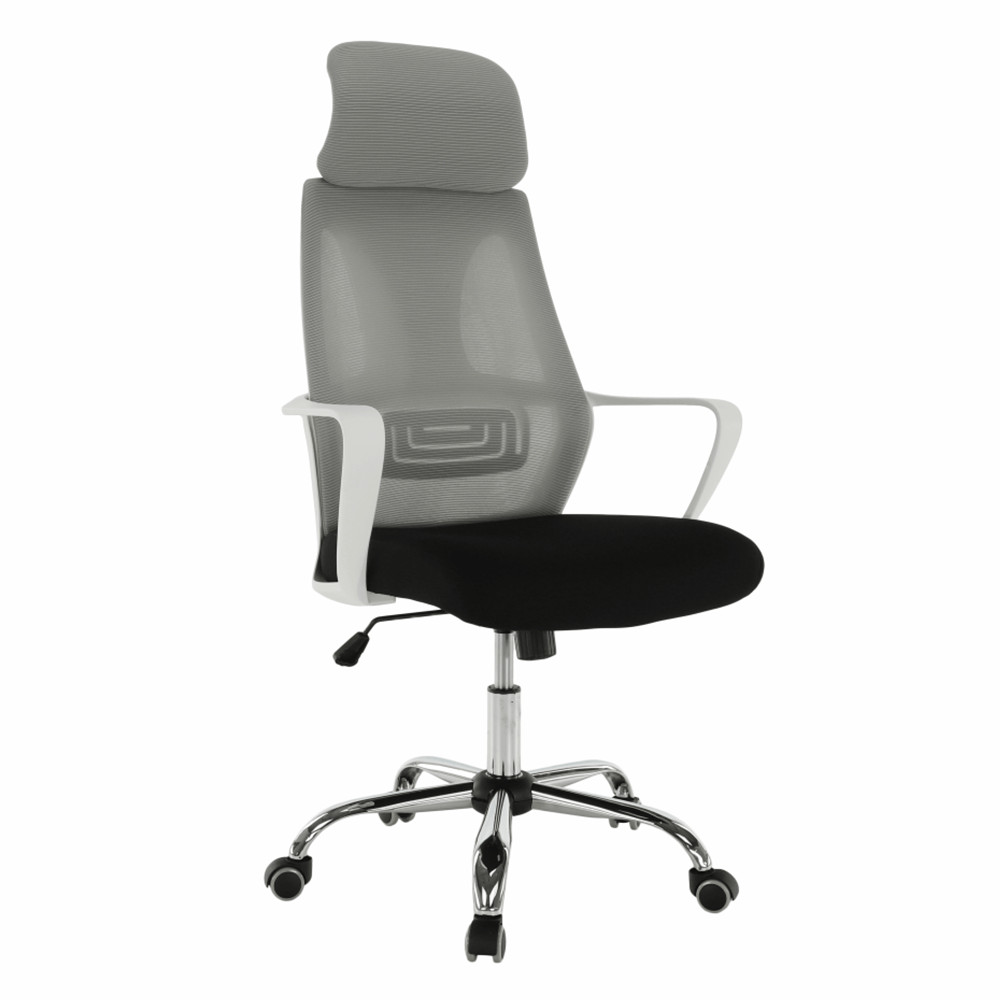 Irodai szék TAXIS Anyag: szövet/műanyag/fém A szövet kopásállósága: 90 000 Martindale Színe: szürke/fekete/fehér Méretek (SzéxMéxMa): 64x63x118-126 cm Állítható ülőrészmagasság : 45-53 cm Ülőrész mélysége : 52 cm Ülőrész szélessége : 50 cm Háttámla magassága: 76-79,5 cm Háttámla szélessége: 49 cm Terhelhetőség: 110 kg Fejtámlával Kartámlákkal Hintamechanizmussal Krómozott alátét Univerzális kerekek puha és kemény padlókhoz egyaránt Szállítás szétszerelve