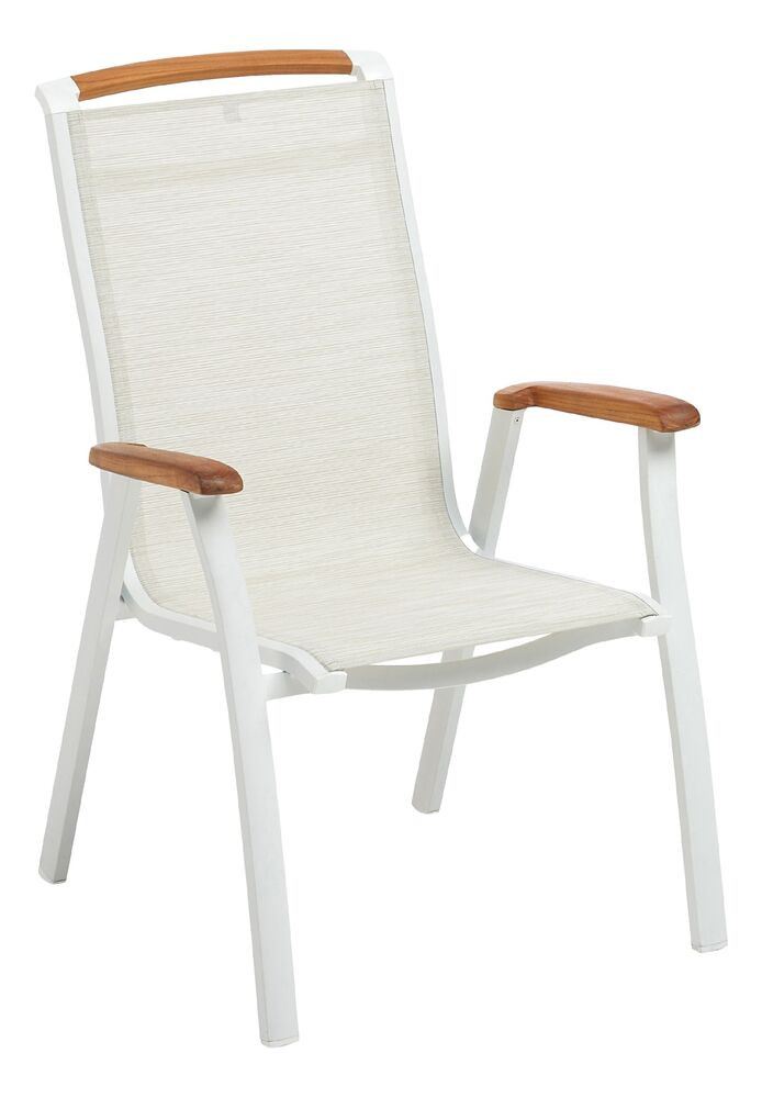 KETTLER MEMPHIS TEAK alumínium rakásolható kerti szék teakfa karfával – fehér / bézs
