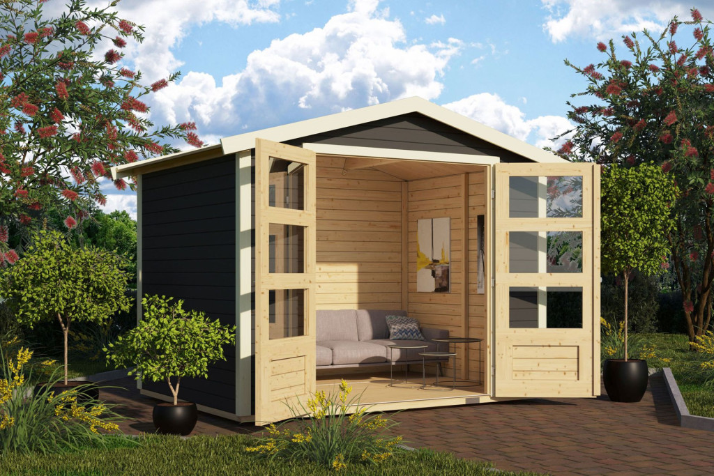 A Karibu Amberg 3 kerti fészer natúr fa vagy terraszürke kivitelben érhető el, így könnyedén igazítható a kert stílusához vagy a meglévő kerti bútorokhoz.