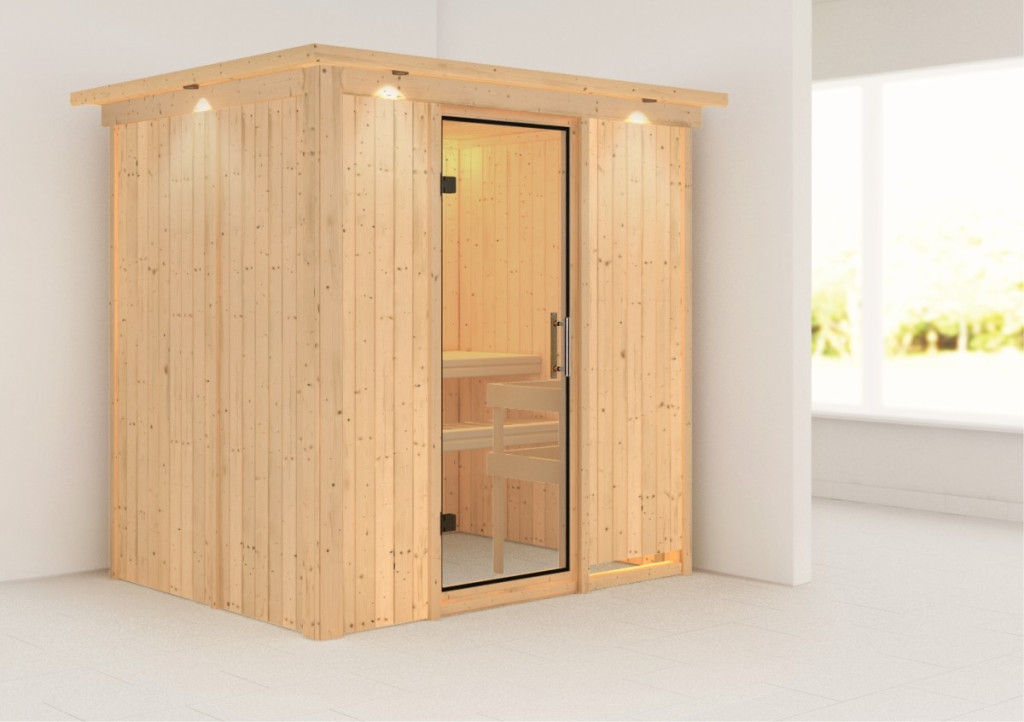 A Karibu Bodin szauna tovább bővíthető praktikus és kényelmi kiegészítőkkel: