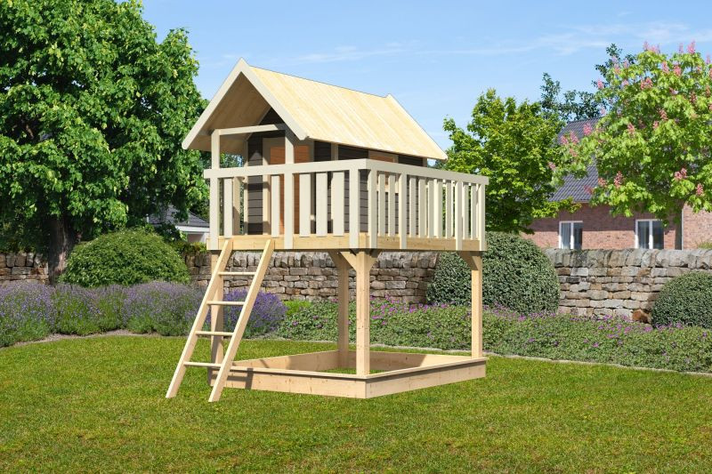 Karibu Frieda cölöpös fa játszóház létrával, kültéri kerti játszóház, Natúr színben (RP)
