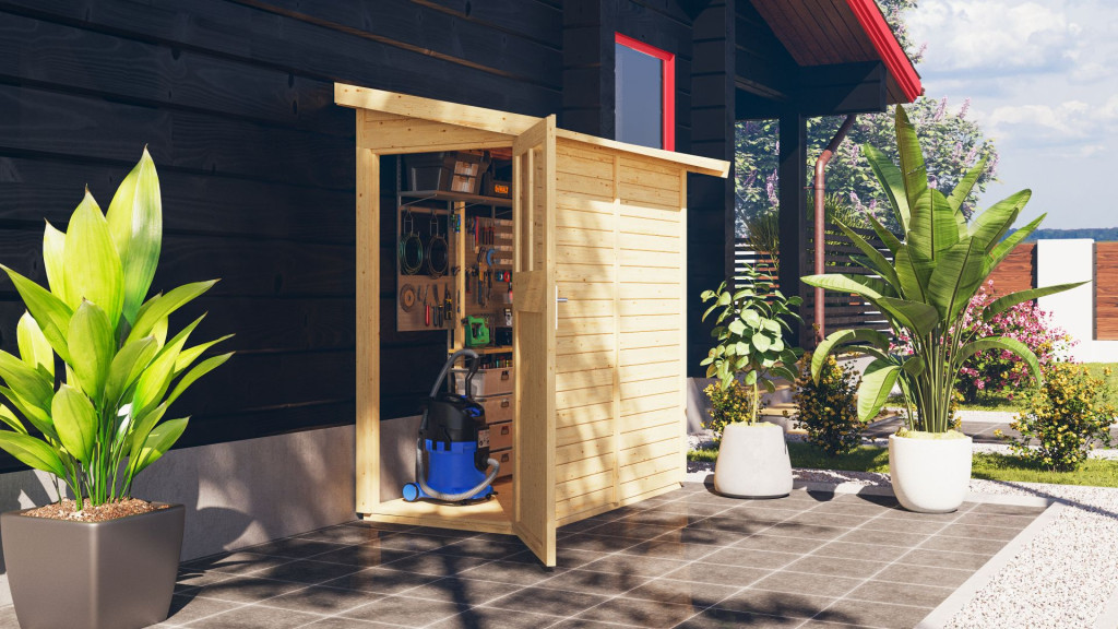 A Karibu kerti tároló ideális választás, ha rendezett és biztonságos helyet szeretnél biztosítani kerti szerszámaid, eszközeid vagy egyéb kültéri felszereléseid számára. A természetes faanyagból készült szerkezet tartós, esztétikus megjelenésű és tökéletesen illeszkedik a kert környezetébe. Kompakt méretének köszönhetően kisebb kertekben vagy udvarokban is könnyen elhelyezhető.