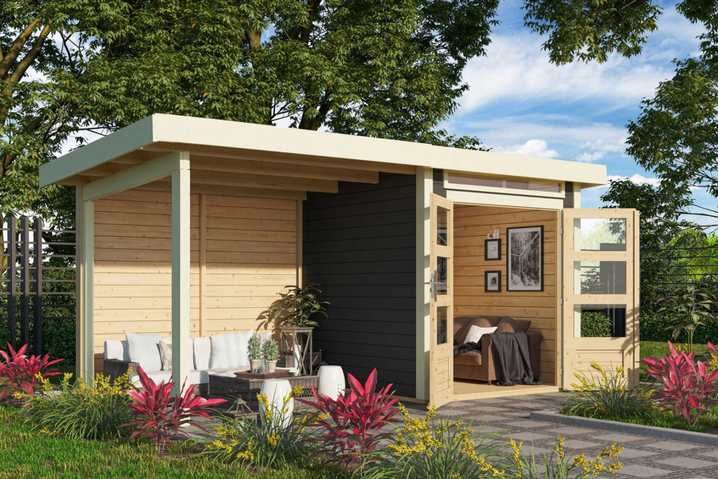 A Karibu Kandern 1 egyik nagy előnye, hogy opcionális bővítőtetővel egészíthető ki, amely a ház mindkét oldalára felszerelhető. Ez extra fedett területet biztosít, így még több tárolási vagy árnyékolási lehetőséget kínál – tökéletes például tűzifa, kerti bútorok vagy grillező elhelyezésére.
