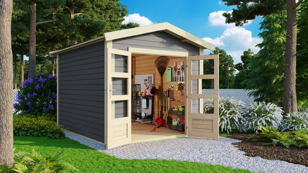 Az ajtó elhelyezése variálható, így a kerti fészer könnyedén igazítható a kert adottságaihoz és a felhasználási igényekhez.