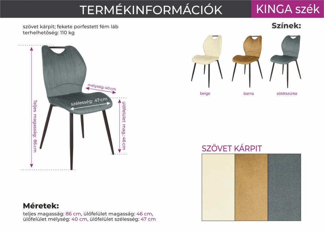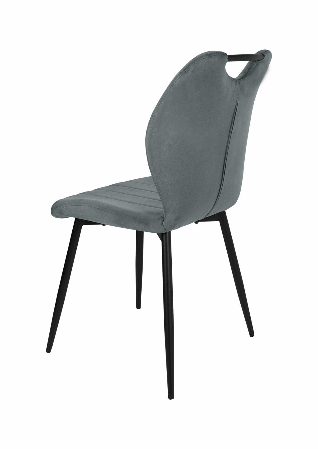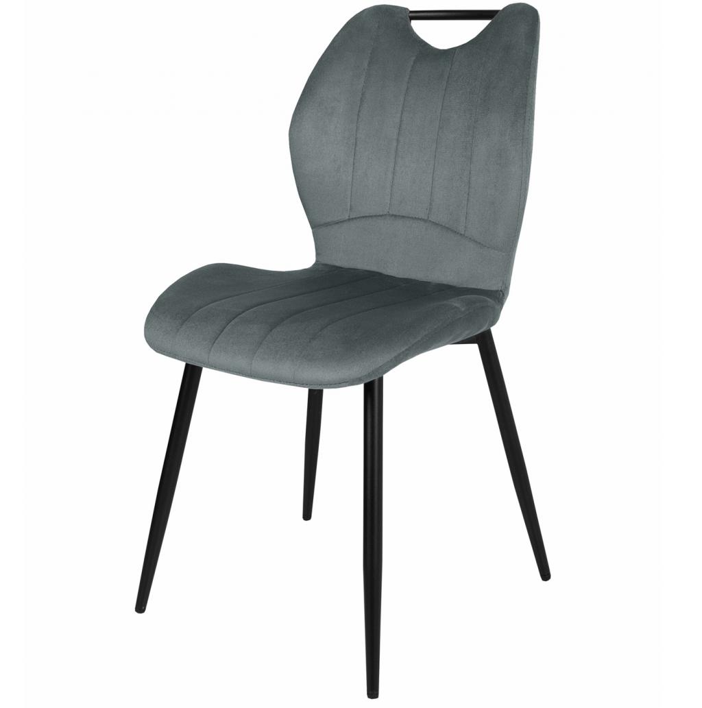 Fekete porfestett lábakkal rendelkező, puha tapintású szövettel borított, áramvonalas formát mutató, kényelmes étkezőszék.