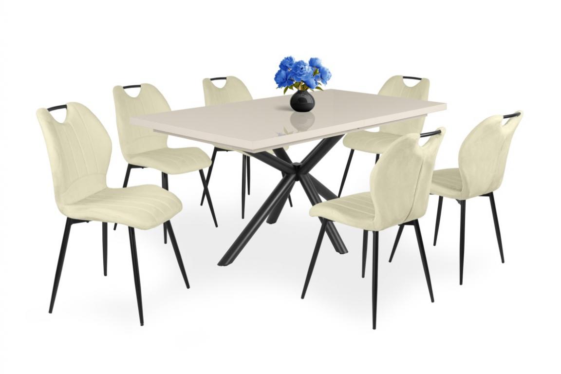 Magasfényű Suzy asztal + 6 db Kinga szék.
