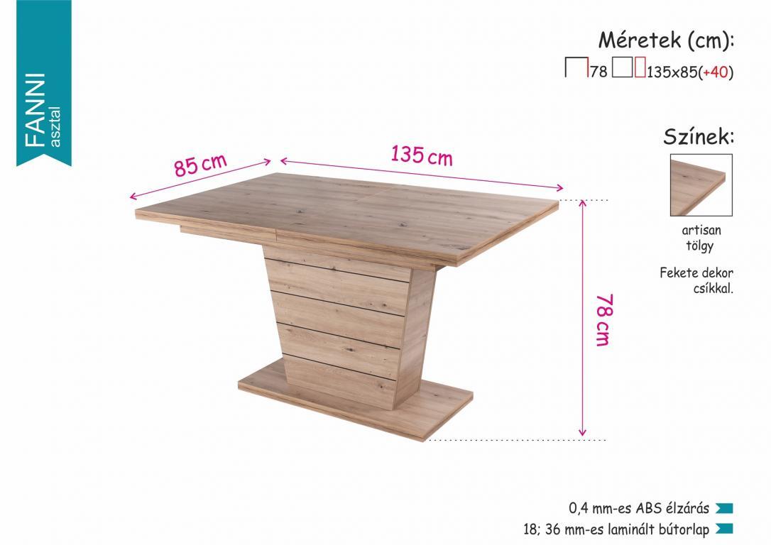 Hosszúság:160 cm ( + 40 cm-es vendéglappal 200 cm -ig bővíthető, a vendéglap tartozék )