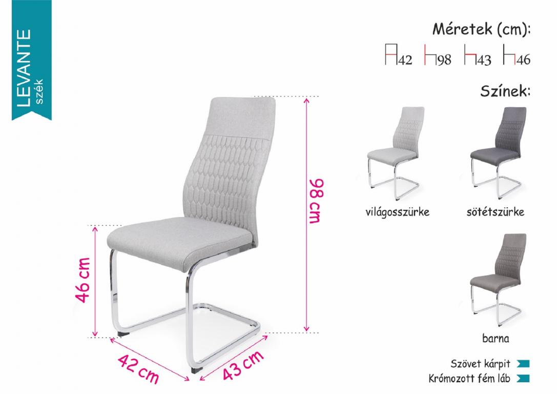A Levante szék világosszürke,sötétszürke és barna színben kapható.