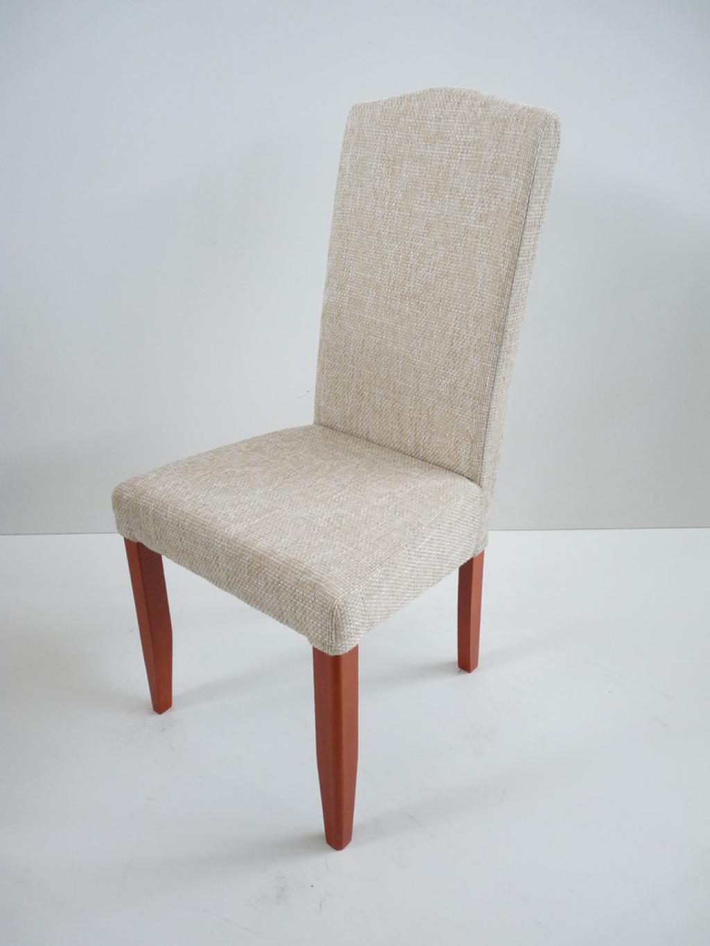 Tömörfa szerkezet pácolva, lakkozva, textil kárpitos hát és ülőlappal.