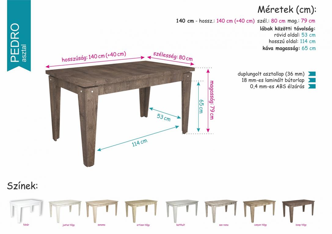 A Pedro asztal méretei: 140 x 80 ( + 40 cm vendéglap)