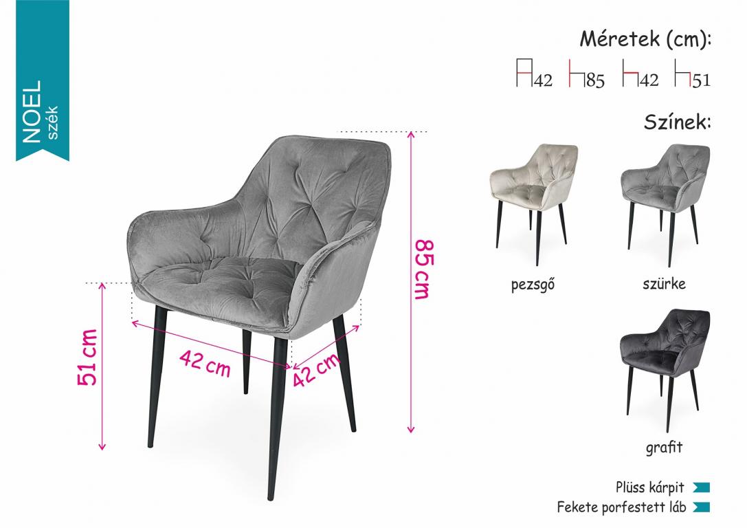 A Noel szék szürke, grafit és pezsgő színben kapható.